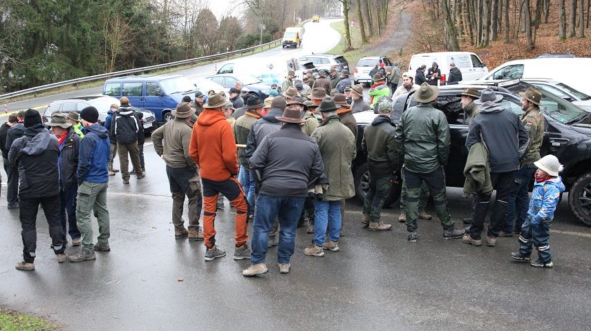 Das Letzte Holzstellen für dieses Jahr, trotz des Wetters Große Beteiligung